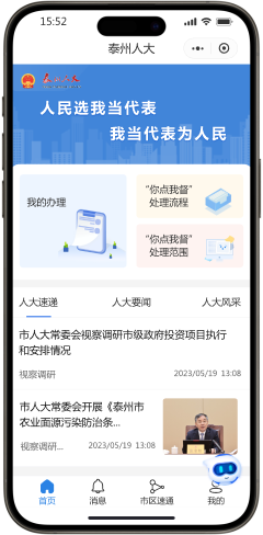 主要功能模块:你点我督、人大要闻,人大风采,市区速通