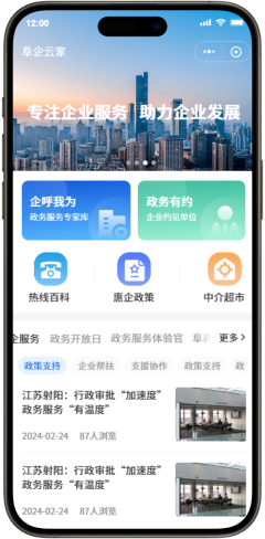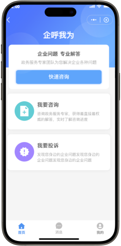 主要功能模块:企呼我为,政务有约,暖企服务,政务开放日,政务服务体验官