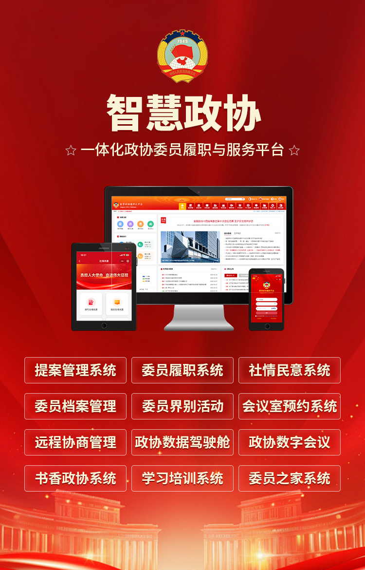 智慧政协云平台的功能设计紧紧围绕政协履职的三大职能——政治协商、民主监督、参政议政展开,通过模块化设计实现履职全流程覆盖。这些功能模块并非简单地将传统工作流程电子化,而是利用数字技术对政协工作进行全链条重构和系统性优化,形成了一套完整、高效、智能的履职支撑体系。